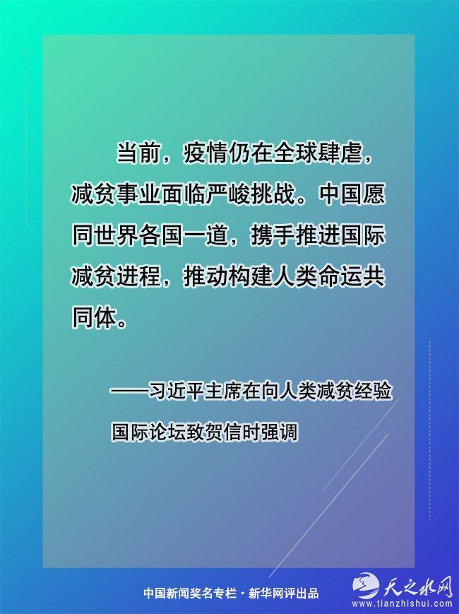 志行万里者,不中道而辍足。当前,中国取得了脱贫攻坚的重大胜利,将继续巩固和拓展成果,扎实推进共同富裕,不断提升民生福祉水平,同时将继续助力全球减贫工作。国际社会只要把发展作为解决贫困的根本途径,勠力同心、携手共进,一定能为共建一个没有贫困、共同发展的人类命运共同体注入更多信心力量。(文字:马若虎 海报:张倩)