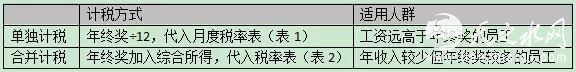 目前,年终奖缴纳个税有两种计税方式,即单独计税和合并计税,不同收入特点的人群可能适用不同的计税方式: