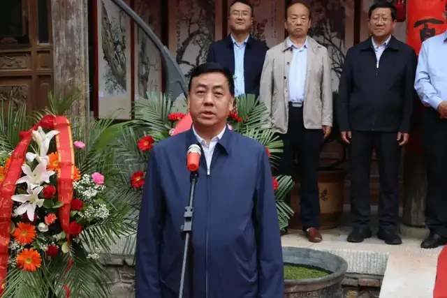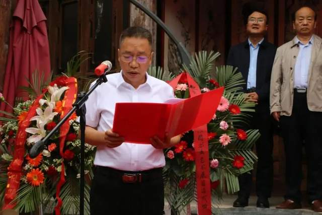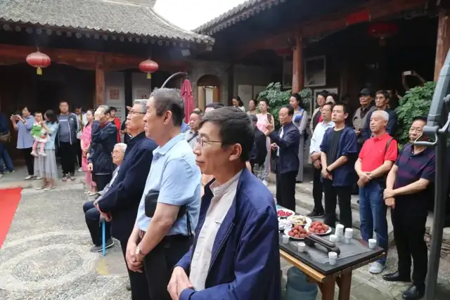 天水市人民政府副市长逯克宗 、天水市政协副主席郭明兴、天水市政协副主席高媛瑾、天水市政协一级巡视员王振宇,原天水市人大副主任杜明富、原天水市人大副主任蒲朝辉、原天水市政协副主席刘力达,以及天水文化艺术界、兰州大学天水同仁文化旅游促进会成员等约200余人参加开展仪式。天水市政协一级巡视员王振宇致辞,天水市政府副市长逯克宗宣布开展,兰州大学天水同仁文化旅游促进会会长刘晓武主持仪式。