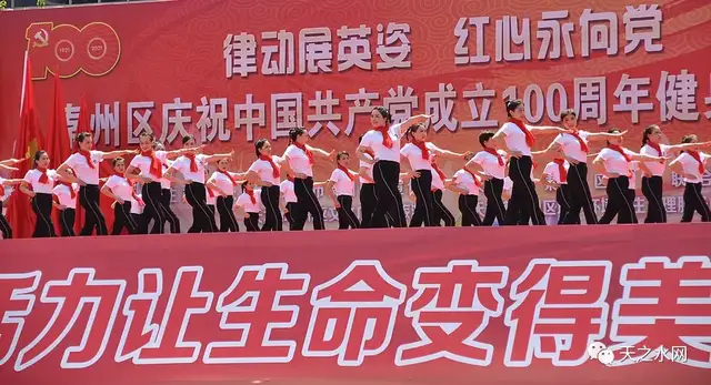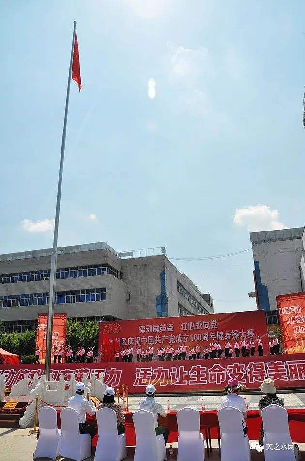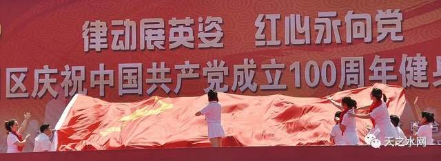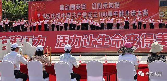 金色的七月美丽如诗,金色的七月硕果喜人。为丰富党史学习教育形式,推动党史学习教育走深走实,营造“热爱运动、健康生活、快乐工作”的氛围,展示新时代干部职工风采。6月27日,由中共天水市秦州区委宣传部、天水市秦州区妇女联合会、天水市秦州区文体广电和旅游局、天水市秦州区城乡环境卫生治理服务中心主办的秦州区庆祝中国共产党成立100周年“律动展英姿 红心永向党”健身操比赛在龙城广场举办。