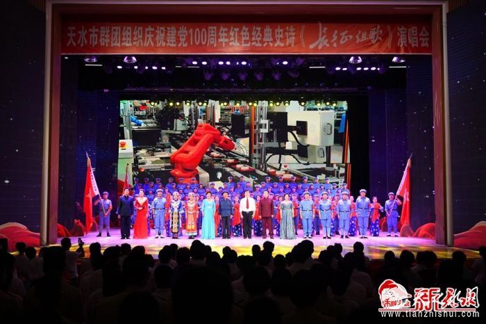 新天水讯【记者李旺旺】7月2日晚,天水市群团组织庆祝中国共产党成立100周年红色经典史诗《长征组歌》演唱会在秦州剧院举行。