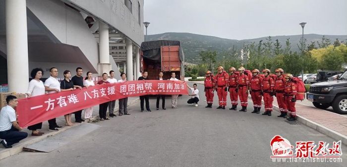 新天水讯【记者 王晓华】7月25日晚,在天水市体育中心,一群热血青年在此集结,他们是由天水市应急救援协会救援队的11名队员组成的救援小组,当晚,运送着装满救援物资的车辆向灾情较重的河南新乡开拔。据悉,这也是我市第一支社会力量驰援河南。