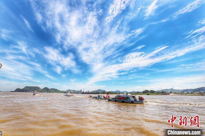 长江流域生态管护队员在江面巡查。 袁昕 摄