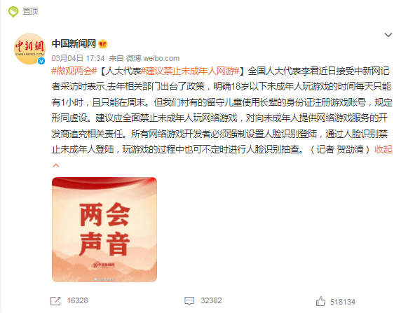 据中国新闻网日前报道,全国人大代表李君近日接受中新网记者采访时表示,去年相关部门出台了政策,明确18岁以下未成年人玩游戏的时间每天只能有1小时,且只能在周末。但我们村有的留守儿童使用长辈的身份证注册游戏账号,规定形同虚设。