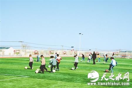 富民完全小学的孩子们在练习足球。新甘肃·甘肃日报记者 金奉乾