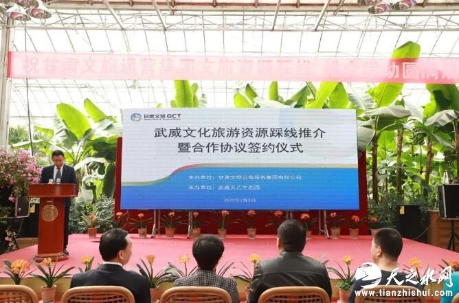3月5日上午,由甘肃文旅运营服务集团有限公司主办的武威文化旅游资源踩线推介暨合作协议签约仪式在武威天乙生态园举办。武威市政协副主席李昌廉,甘肃文旅集团党委委员、纪委书记、监察专员李存旺出席并致辞。武威市文体广电和旅游局、甘肃兰神国际旅行社等相关负责人以及来自甘肃、青海多家旅行社参加了此次推介会。