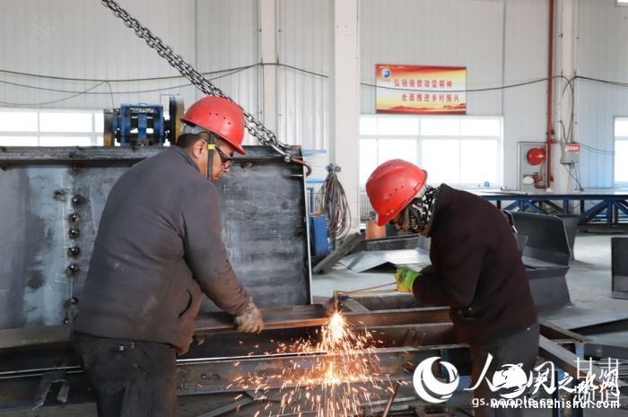 位于东乡县的方大炭素久兴模板有限公司里,两位工人正在车间内工作。人民网 王文嘉摄
