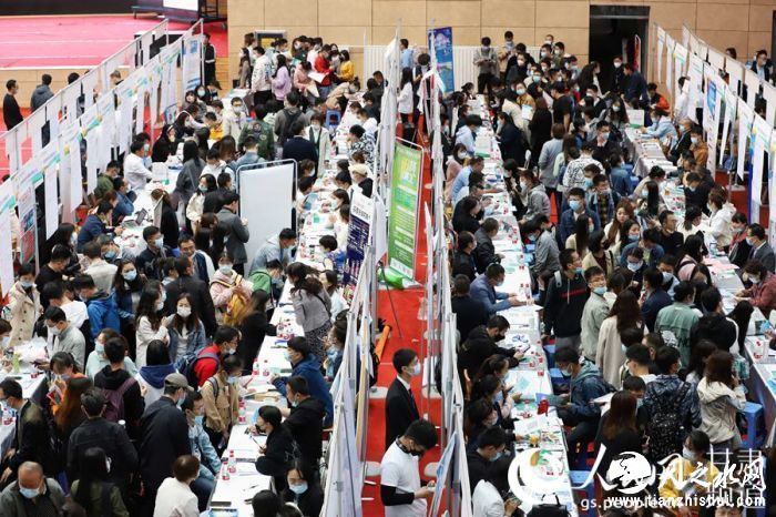 甘肃省2021届高校毕业生就业促进周期间,来自省内多所高校的毕业生在兰州理工大学参加双选会。人民网 王文嘉摄(资料图)