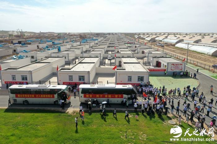 舟曲县避险搬迁群众到达兰州新区地质灾害避险搬迁安置点。 丁凯摄(资料图)