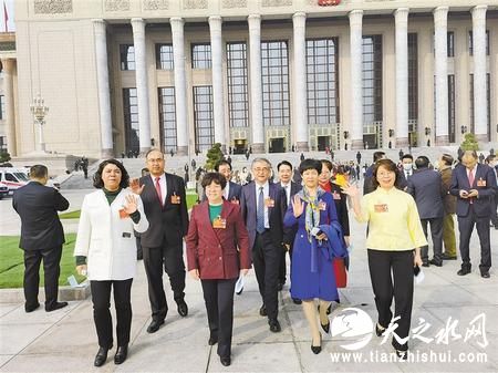 住甘全国政协委员步出人民大会堂。 省政协供图