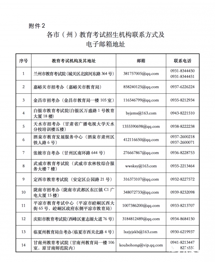 2.各市(州)教育考试招生机构联系方式及电子邮箱地址