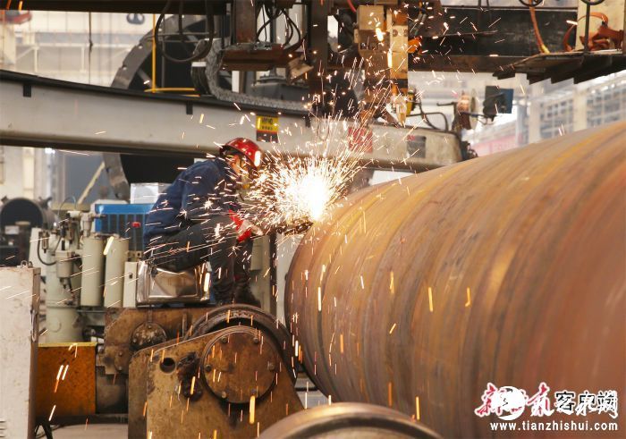 3月9日,兰石集团重装炼化公司职工正在车间打磨产品,现场焊花飞溅。
