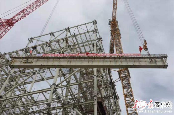 3月9日,甘肃电投集团常乐电厂3号锅炉首根大板梁吊装就位。