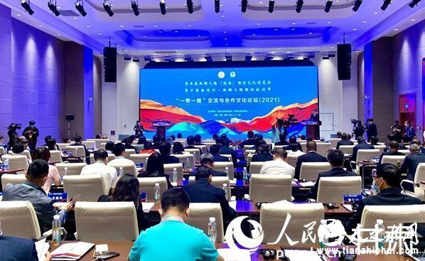 第五届丝绸之路(敦煌)国际文化博览会“一带一路”交流与合作文化论坛(2021)在敦煌国际会展中心举行。人民网 王文嘉摄
