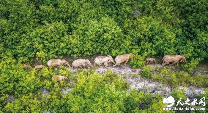 原本栖息在云南省西双版纳傣族自治州境内的一群野生亚洲象北上及返回之旅,引发全球关注。中国政府与民众携手护象的行动得到世界点赞。图为2021年8月9日在云南省玉溪市元江县境内拍摄的象群(无人机照片)。新华社记者 胡超/摄