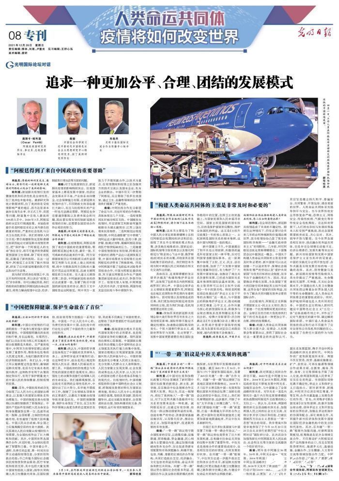 具体而言,克里斯蒂娜的发言曾多次提及“构建和维护多边世界”,这体现了包括我在内的阿根廷政界同仁的心声。中国在全球多边主义领域发挥着重要作用,阿根廷也在地区范围和世界范围内有着积极参与。面对疫情以及疫情造成的后果,我们更加相信阿根廷将坚持同样的立场,因为我们知道,危机局势需要这样的立场。