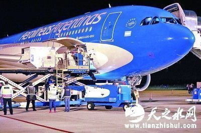 四月一日,工作人员在阿根廷布宜诺斯艾利斯埃塞萨国际机场卸载运抵的中国新冠疫苗。新华社发