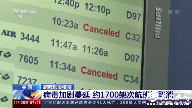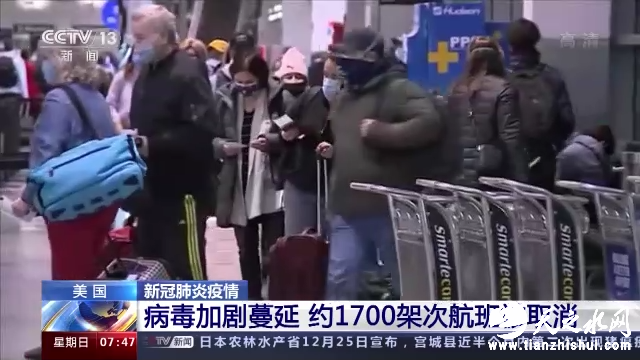 由于新冠病毒变异毒株奥密克戎在美国肆虐,美国多个航空公司的机组人员和运营人员出现短缺,不少航班被迫取消。25日,美国联合航空公司已取消了300多架次航班,达美航空公司取消了390多架次航班。