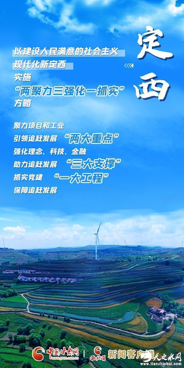 在“感恩创新苦干、勇毅追赶奋进”的新时代定西精神的引领和感召下,未来五年,定西市以建设人民满意的社会主义现代化新定西为奋斗目标,实施“两聚力三强化一抓实”方略,即聚力项目和工业“两大重点”引领追赶发展,强化理念、科技、金融“三大支撑”助力追赶发展,抓实党建“一大工程”保障追赶发展。