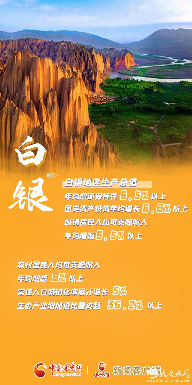 今后五年,白银将持续向目标奋进——全市地区生产总值年均增速保持在6.5%以上,固定资产投资年均增长6.8%以上,城镇居民人均可支配收入年均增幅6.5%以上,农村居民人均可支配收入年均增幅8%以上,常住人口城镇化率累计增长5%,生态产业增加值比重达到36.2%以上,数字经济增加值占地区生产总值比重实现翻番,单位GDP能耗、二氧化碳排放、城市空气质量优良天数、森林覆盖率完成省上下达任务,实现更高质量、更有效率、更加公平、更可持续、更为安全的发展。