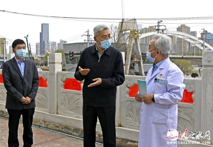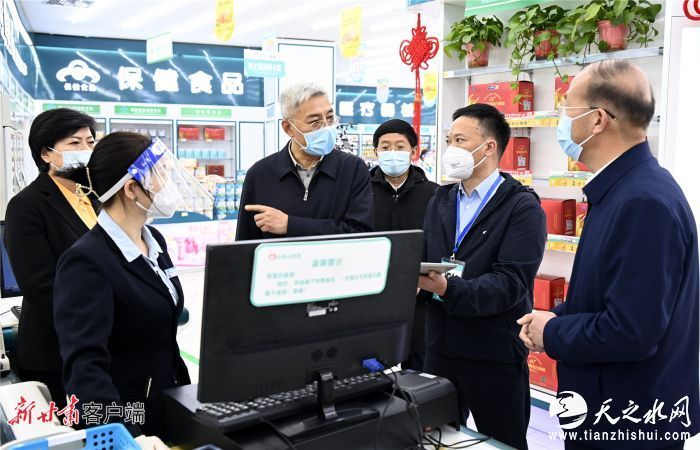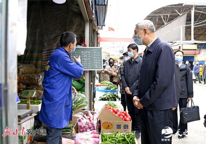3月21日,省委书记、省疫情联防联控领导小组组长尹弘在兰州市城关区蔬菜瓜果批发市场、兰州市第二人民医院、心连心医药广场调研指导疫情防控工作。新甘肃·甘肃日报记者 高樯