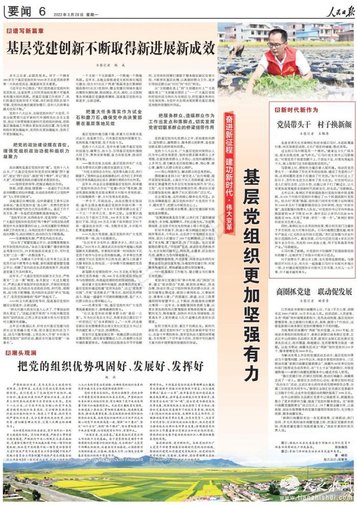 去年以来,秦州区开展软弱涣散村党组织集中排查整顿,从420个行政村党组织中确定了16个软弱涣散村党组织。结合村“两委”换届,组织部门对所有村班子运转情况和1400多名村干部履职情况综合分析研判,突出“双好双强”,选优配强村级带头人队伍。“村党组织书记平均年龄由换届前的46岁下降至40岁,高中及以上学历占比由56%提高至98%,实现了年龄、学历‘一降一升’。”秦州区委组织部有关负责人说。
