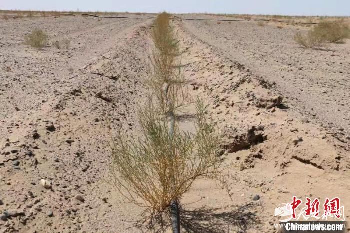 中新网兰州3月29日电 (杨娜 王萍)春意渐浓,甘肃省酒泉市金塔县鼎新镇双树村村民胡兵,带领村民实施新一年栽种梭梭的计划。2022年他的公司计划在这片被沙漠围困的荒滩沙地上种5万亩梭梭,栽植新的梭梭林。