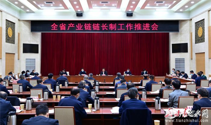 新甘肃客户端兰州4月1日讯(新甘肃·甘肃日报记者 金鑫)全省产业链链长制工作推进会今天在兰州召开,省长、省产业链总链长任振鹤讲话强调,要始终把习近平总书记对甘肃重要讲话和指示精神作为根本遵循,牢牢把握“三新一高”要求,更加聚焦产业兴省、工业强省,以产业基础高级化产业链现代化为目标,以实施“1+N+X”政策体系为抓手,深入落实强工业行动“1+10”实施方案和行动计划,用全产业链思维强龙头、补链条、聚集群,完善产业链、融通供应链、提升价值链、做强创新链,加快构建支撑高质量发展的现代产业体系。