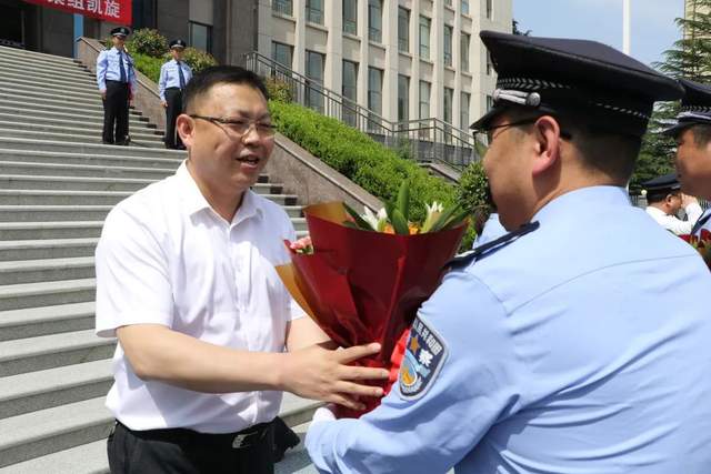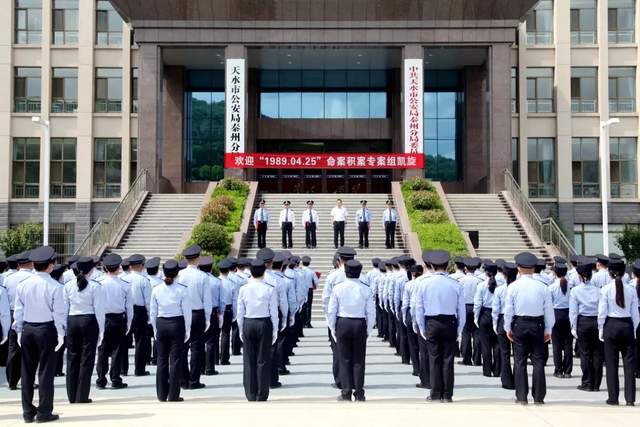 5月20日,市、区两级公安机关在天水市公安局秦州分局举行仪式,欢迎秦州分局“1989.04.25”命案积案专案组凯旋。副市长、市公安局党委书记、局长郭庆祥出席仪式并致辞,秦州区委常委、政法委书记何炜巍向专案组民警献花,市公安局党委委员、副局长李世和宣读市局嘉奖令。仪式由秦州区副区长、公安分局党委书记、局长马小军主持。市公安局刑警支队负责同志,秦州分局在家党委班子成员、民警代表参加仪式。
