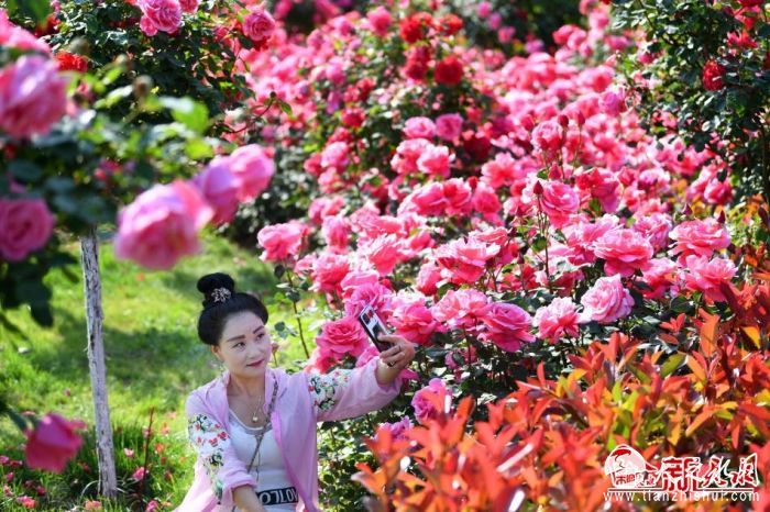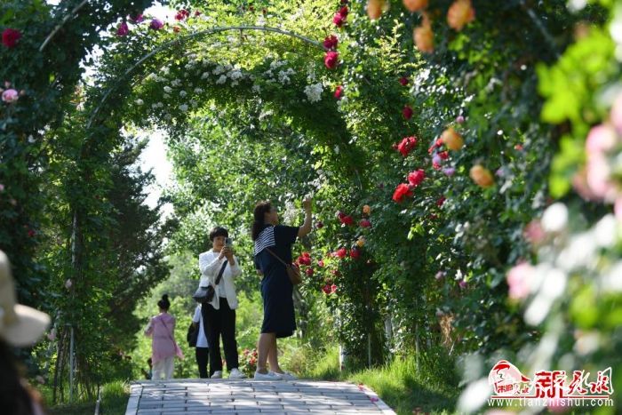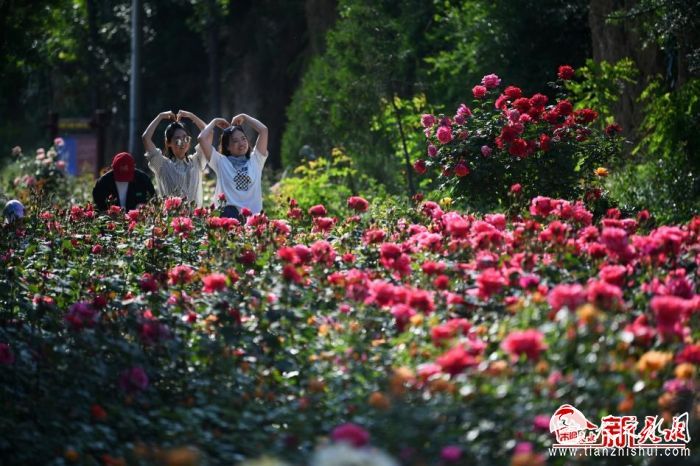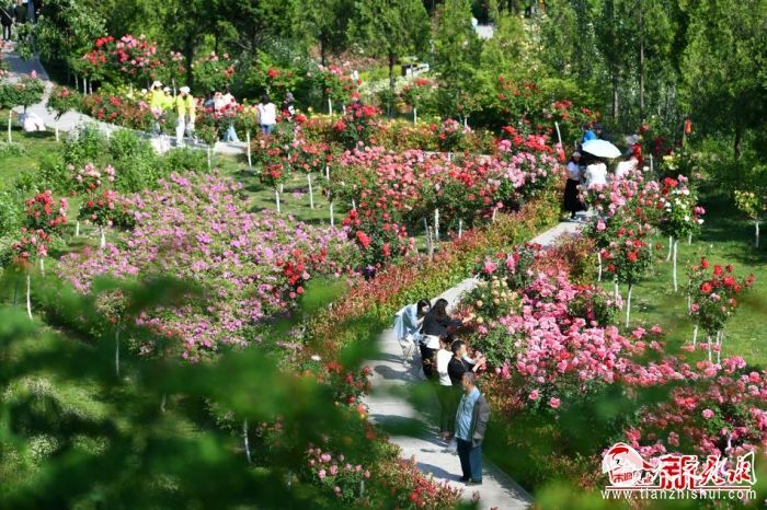 曲径通幽处,花海悦人心。5月23日,市民在位于秦州区玉泉镇玉泉村的北山月季生态园里赏花游玩。