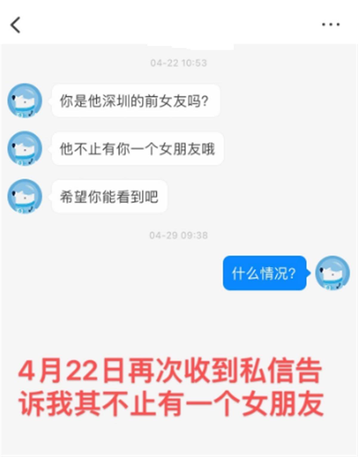 2021年7月,钱女士与段某某分手,半个月后钱女士在社交平台上收到一名网友的私信,对方称自己是海南师大2021届毕业生,段某某是她的指导老师,在段某某还未与钱女士分手时,她也曾与段某某发生过关系。2021年12月,钱女士与段某某复合,中途两人又经历了一次分手,于2022年3月再次复合。但2022年4月底,钱女士又收到一女生的私信,对方表示段某某目前不止有她一个女朋友。