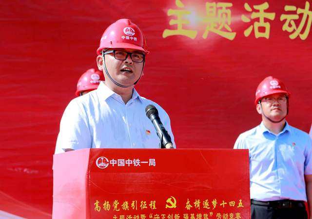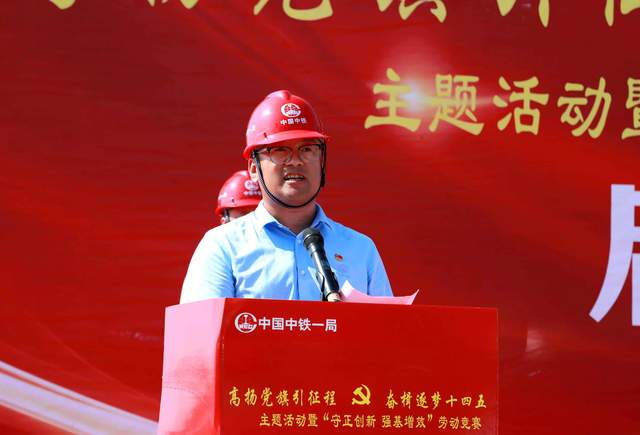 中铁一局海花岛项目负责人赵红来代表项目表态,统一思想,振奋精神,迅速掀起竞赛高潮;率先垂范,当头攻坚,充分发挥党员示范引领作用;保卫安全,捍卫质量,高效推进工程建设。