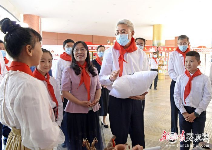 校园里充满欢快和向上的气息,彩陶、扎染、3D彩绘、机器人、无人机工作坊等社团活动丰富多彩,尹弘认真聆听孩子们充满童趣的介绍,了解学校社团活动开展情况,祝大家节日快乐。随后尹弘与孩子们一起参加少先队集中入队、离队仪式。他说,习近平总书记在庆祝中国共产主义青年团成立100周年大会上发表重要讲话,指出“在实现中华民族伟大复兴的征程上,中国共产党是先锋队,共青团是突击队,少先队是预备队”。你们作为预备队的一员,今天是小树苗,将来一定会长成参天大树、栋梁之才。希望大家牢记习爷爷的教诲,从小听党话、始终跟党走,志存高远、勤学上进,争做德智体美劳全面发展的社会主义建设者和接班人。