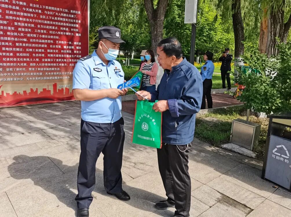 为切实增强人民群众的防诈骗意识和能力,有效预防和减少辖区电信诈骗案件的发生,保护人民群众的财产安全,6月5日,天水市公安局麦积分局马跑泉派出所民警利用端午假期及世界环境日,联合环保执法队在马跑泉公园开展防范电信诈骗宣传活动。