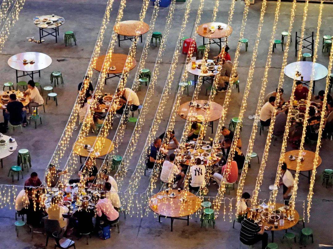 5月30日,湖北襄阳市,人们在闸口露天大排档吃夜宵。图/IC