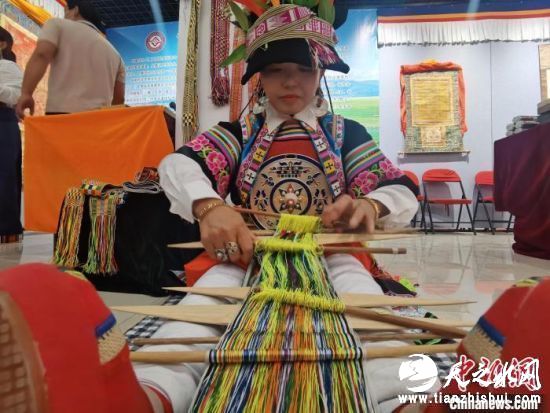 中新网甘肃张掖6月8日电 (闫姣)脚蹬纺织板,手持木梭子,甘肃甘南藏族自治州舟曲县藏族姑娘全庸卓玛坐在地上,展示省级非遗织锦带,藏族妇女用其束腰、扎靴。她说,这项技艺后继乏人,希望通过这种“走出去”的活动,让更多人了解这一独特文化。
