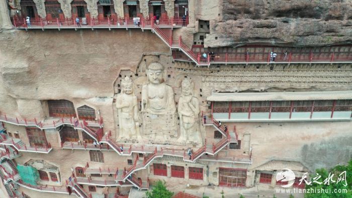 世界文化遗产麦积山石窟位于甘肃省天水市,始建于距今约1600年的后秦,现存洞窟221座,有大量精美的雕塑、壁画,被称为“东方雕塑陈列馆”。