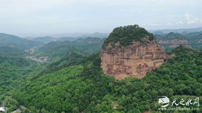 这是6月9日拍摄的麦积山石窟(无人机照片)。新华社记者 陈斌 摄