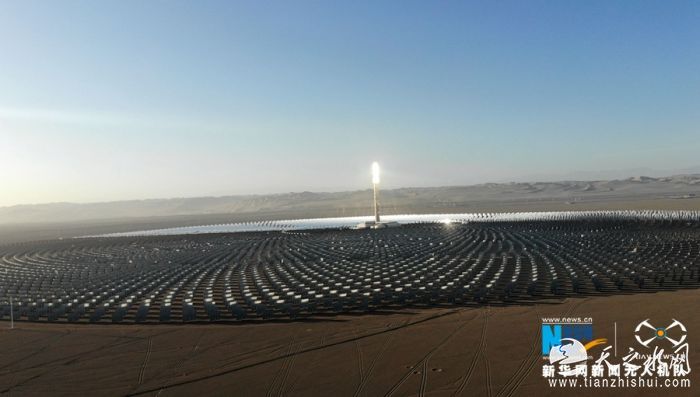 这是6月12日在甘肃省敦煌市光电产业园区拍摄的100兆瓦熔盐塔式光热电站全貌。新华网发 (张晓亮 摄)