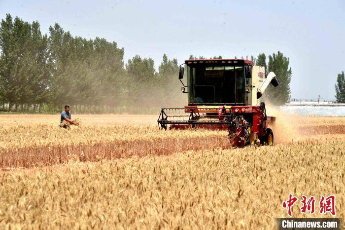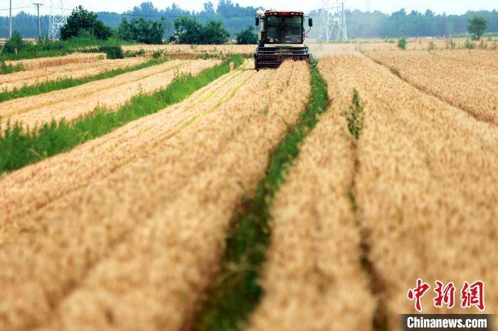 (资料图)联合收割机在山东省聊城市茌平区贾寨镇耿张村田间进行小麦收割作业。 赵玉国 摄