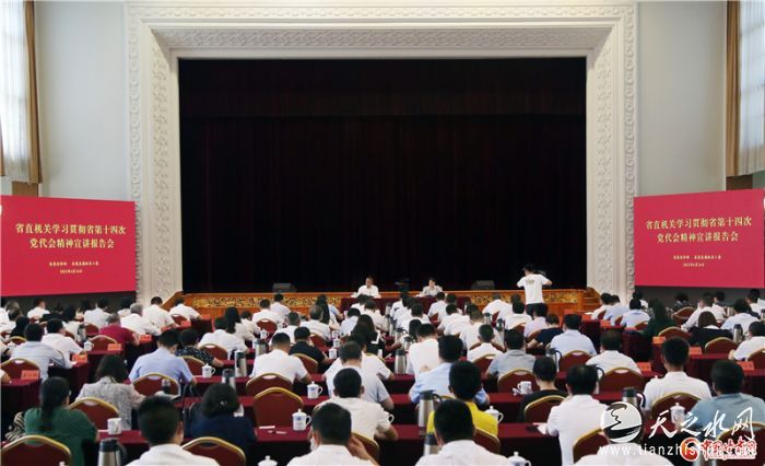 中国甘肃网6月16日讯(本网记者 程健)6月16日下午,由中共甘肃省委宣传部、省委直属机关工委联合举办的省直机关学习贯彻省第十四次党代会精神宣讲报告会在兰州举行。省委宣讲团成员、省委委员、省委宣传部副部长、省委网信办主任梁洪涛作宣讲报告。