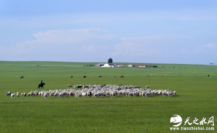 内蒙古锡林郭勒盟乌拉盖管理局境内的草原上,牧民在放羊。新华社记者贾立君 摄