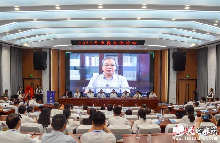 新甘肃客户端天水讯(新甘肃·甘肃日报记者 白永萍)6月21日,由山东大学易学与中国古代哲学研究中心、中国周易学会、国际易学联合会、天水市人民政府、甘肃省人民政府文史研究馆、天水师范学院主办的2022年伏羲文化论坛在天水师范学院开幕。论坛以线上线下相结合的方式在天水会场与山东会场同步举行。