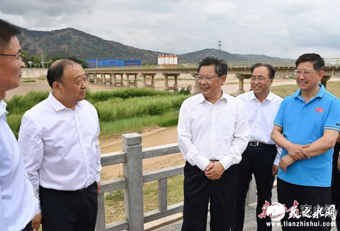 在甘谷县新兴镇蔡家寺渭河大桥,任振鹤认真听取河道治理、防汛抗旱及河湖长制落实情况。他强调,要立足防大汛、抗大旱、抢大险、救大灾,压紧压实各级河湖长责任,想在前、备在先,保江河安澜、保群众安全。要坚持抓续建、抓配套、抓更新、抓改造,打通“最后一公里”,优化水网体系布局、完善水利基础设施。