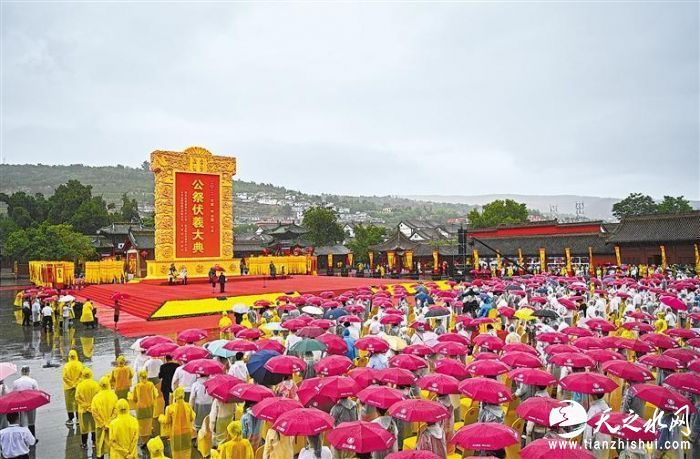 今天的伏羲庙,甘霖洒地、古柏参天、旗幡列张、鼓声雄浑、钟磬悠扬。中华儿女聚首羲皇故里天水,怀虔敬之心、传承之念,以太牢之礼、雅乐之仪,致祭于中华人文始祖太昊伏羲氏。