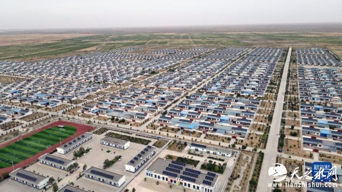 这是6月11日拍摄的甘肃省武威市古浪县黄花滩富民新村村貌(无人机照片)。新华社记者 张智敏 摄