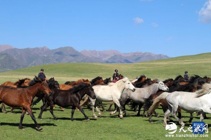 山丹马场一场的牧马人在放马,如今的山丹马场正努力打造国家优质马种质资源保护及速力型赛马培育基地(6月10日摄)。新华社记者 张智敏 摄