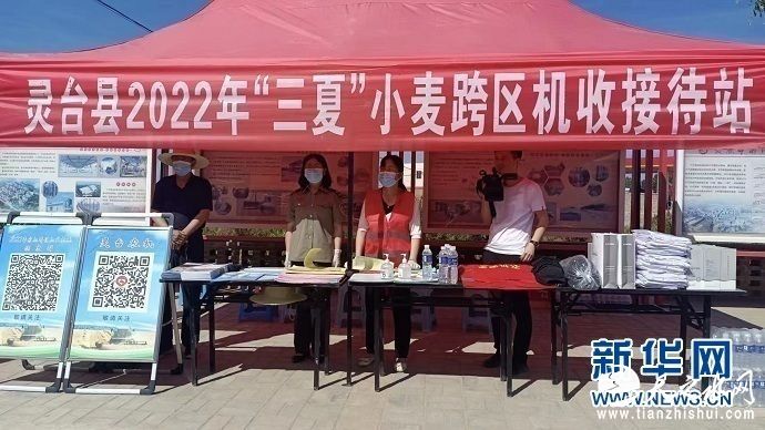 图为灵台县2022年“三夏”小麦跨区机收接待站。(甘肃省农业农村厅供图)