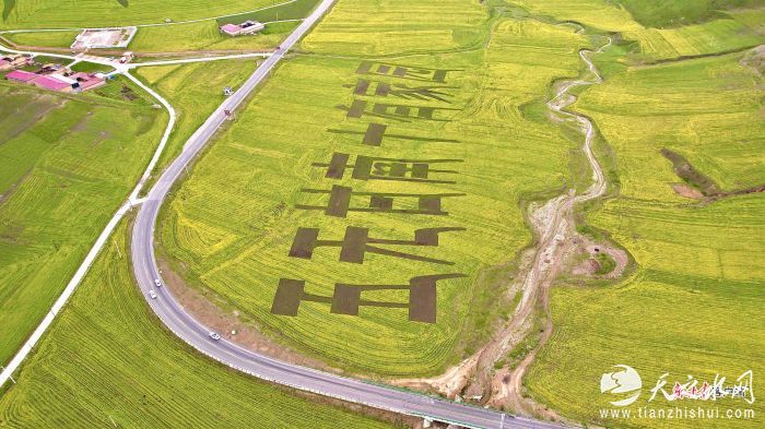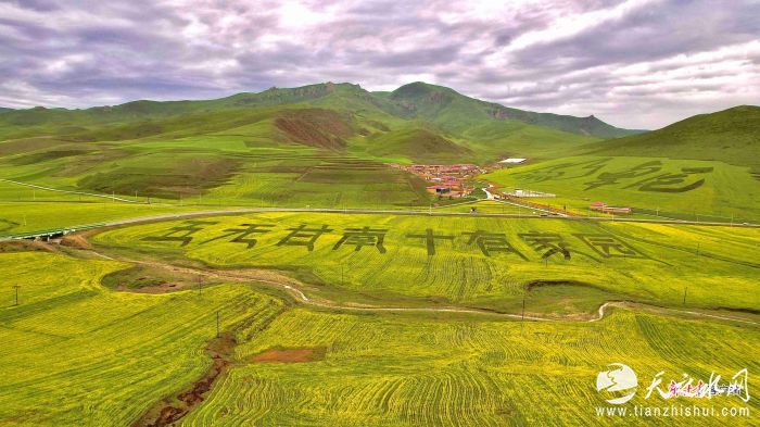 “五无甘南 十有家园”图案的“油菜画”别致震撼。新甘肃·甘肃日报记者 韦德占
