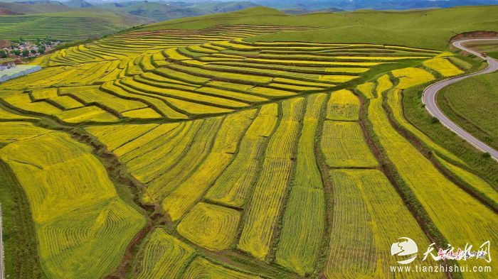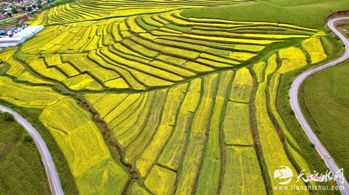 今年,卓尼县继续在S306省道沿线的完冒镇集中连片种植油菜1870亩,以大路石山观景台为中心在阿子滩镇公路沿线的地块种植小油菜2130亩油菜花。此外,在完冒镇红山口观景台川地种植“五无甘南 十有家园”喜马拉雅版艺术字,在山坡地种植“卓尼”字样及“三角石及洮河”图标,以油菜为布,用青稞作笔,在田间用两种作物绘出了不同的字形和图案,为油菜花景观点缀了靓丽的一笔,成为车窗廊道不可错过的风景线。